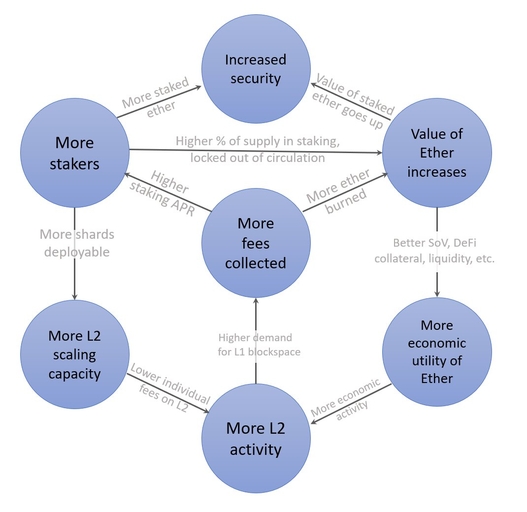 And simply put, there is a fuckton of ETH involved. 10 million and counting and that’s before the merge. At current prices that’s roughly 30 billion dollars. Both “amount of ETH staked” and “value of ETH” are projected to go up, so attacks become increasingly unlikely due to the sheer economic cost involved in doing an attack — once — and the absurdity of acquiring that much ETH in the first place if the attack comes from an outside actor (where would you buy 10 million ETH to have 51% of the stake? 20M?)